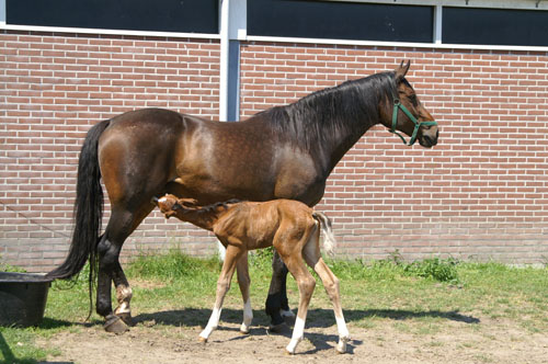 Bijou is dinsdag 13 juni geboren om 4.00. Ze stond en dronk erg vlot en heeft haar eerste levensdag al lekker kunnen genieten van droog weer en een zonnetje dus heeft dan ook volop gelopen geslapen en gedronken. (zoals de foto's ook laten zien)